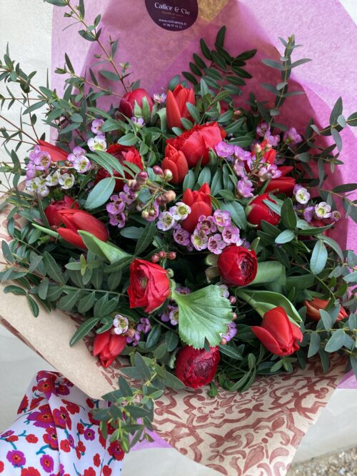 En tant que fleuriste engagé, Calice & Cie propose des services de livraison les moins carbonés possibles : Vélo-cargo à assistance électrique (vélo produit localement par les ateliers Douze Cycles à Ladoix-Serrigny).